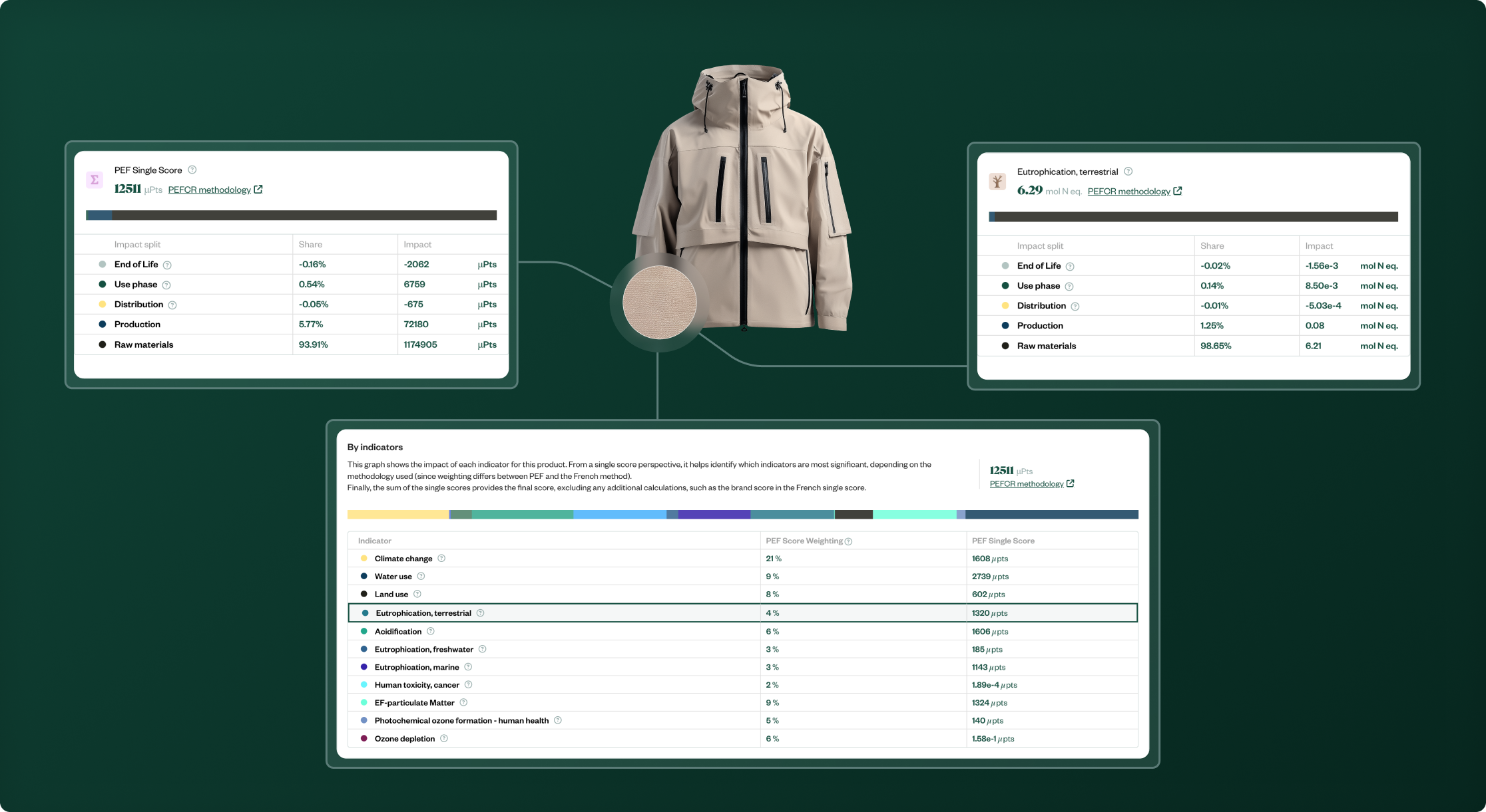 Get LCA indicators based on the Product Environmental Footprint (PEF) methodology to understand the environmental impact of your product based on 16 criteria.