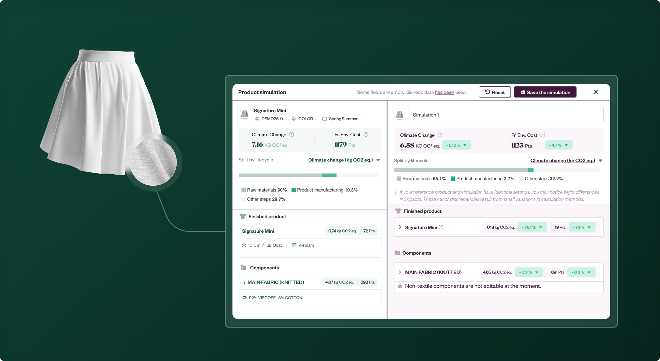 Get a comprehensive breakdown of your product's Life Cycle Assessment (LCA) to pinpoint critical impact areas.